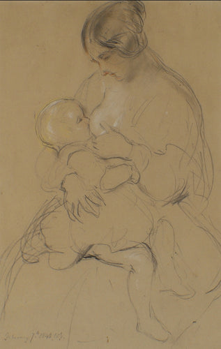 William Simson R.S.A. Pencil And Chalk Study Of A Breastfeeding Mother 1842