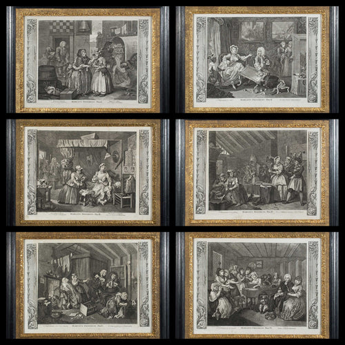 William Hogarth The Harlots Progress A Set Of Six 18th.Century Copper Engravings In Sanded Slip Frames