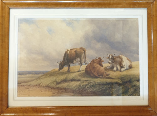 Thomas Baker Of Leamington Watercolour Cattle In A Landscape 1861