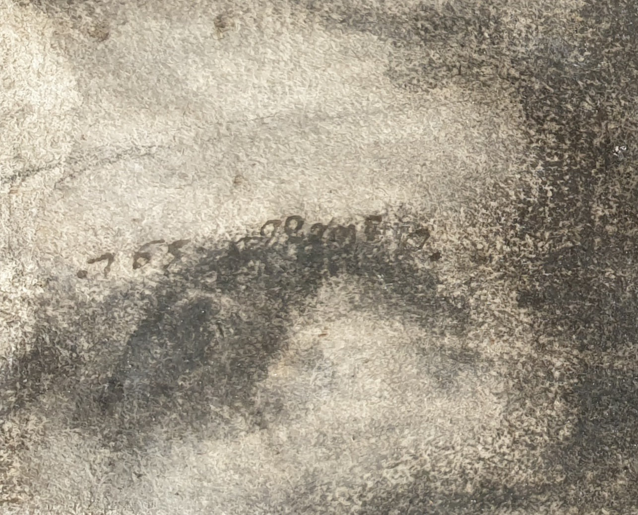 Jacob Ferdinand Voet Ca.1639-1689. Flemish School 17th.Century chalk portrait drawing on laid paper. Portrait of a young woman. Indistinctly inscribed and dated 1673. Some old worm and surface damage to no real detriment, slightly foxed. 13.5 by 19 cms.