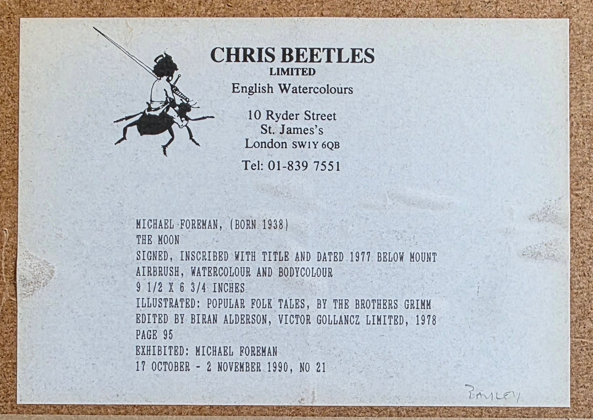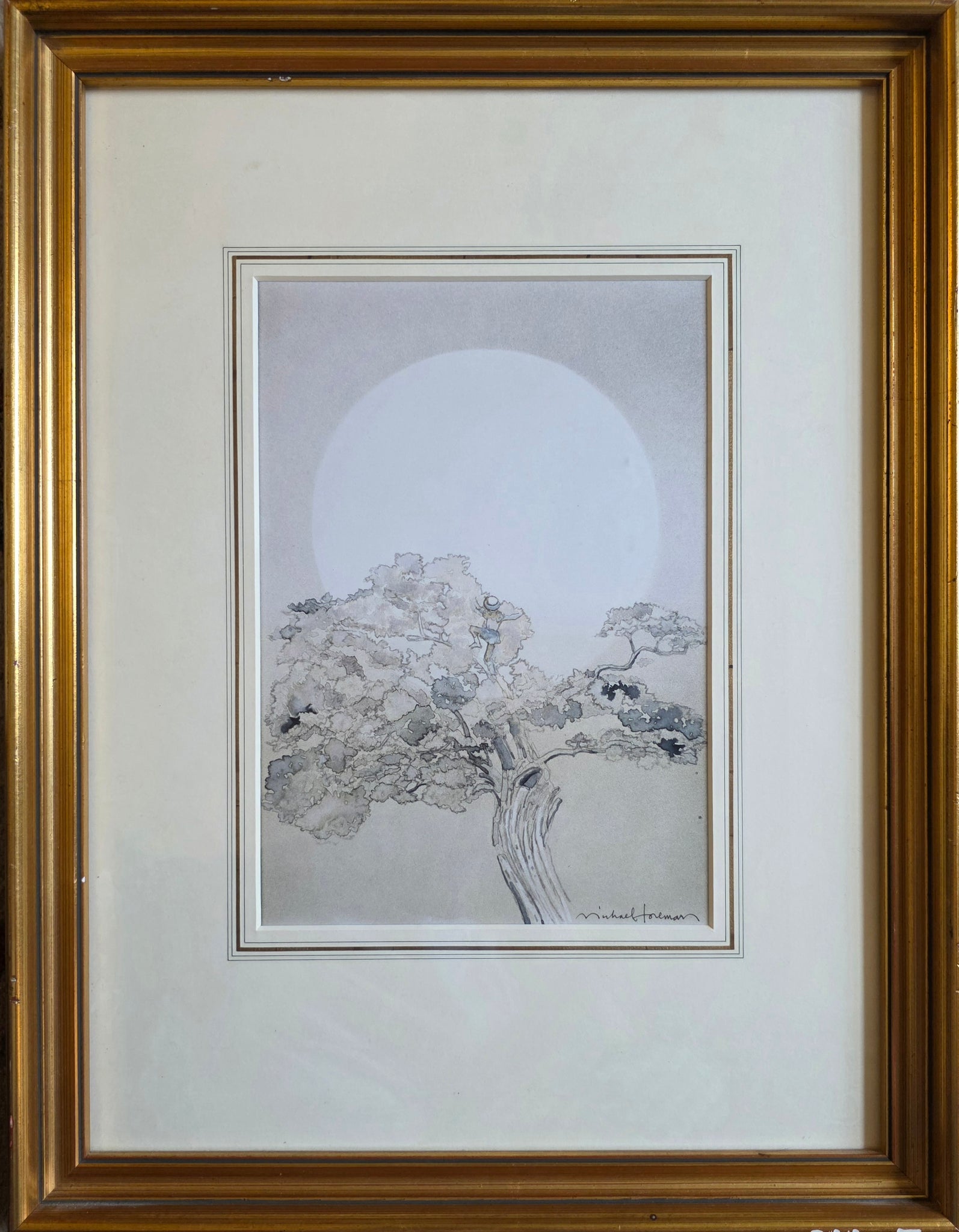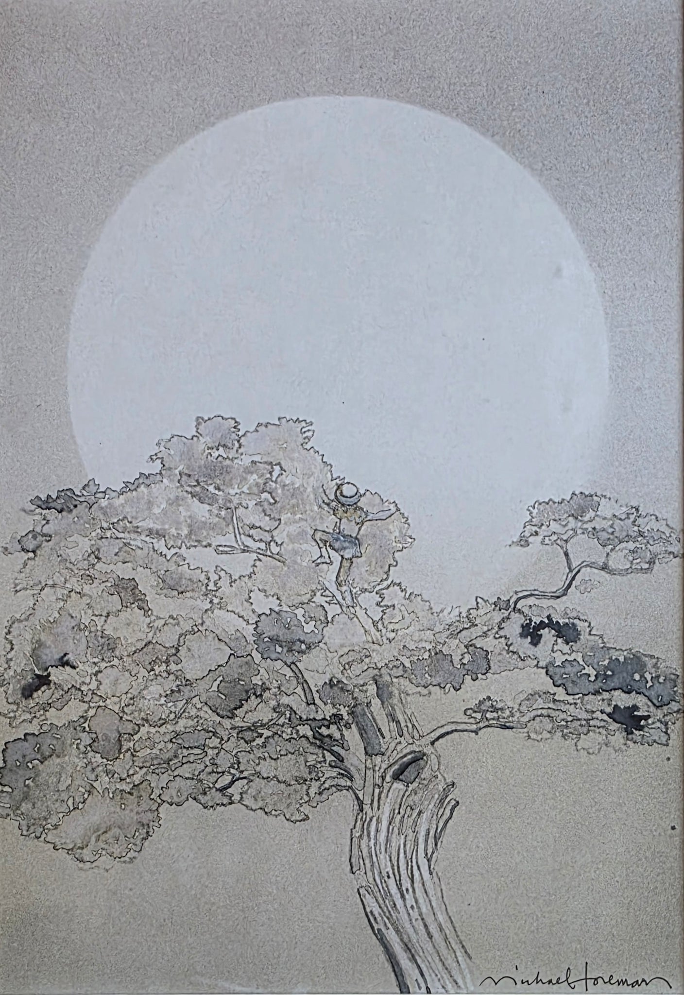 Michael Foreman B.1938. British School 20th.Century. Watercolour drawing, The Moon. Original artwork illustration for Popular Folk Tales by The Brothers Grimm, 1978. Provenance: Chris Beetles Michael Foreman Exhibition 1990 No.21. Private Collection U.K. Signed lower right. 16.8 by 24 cms.