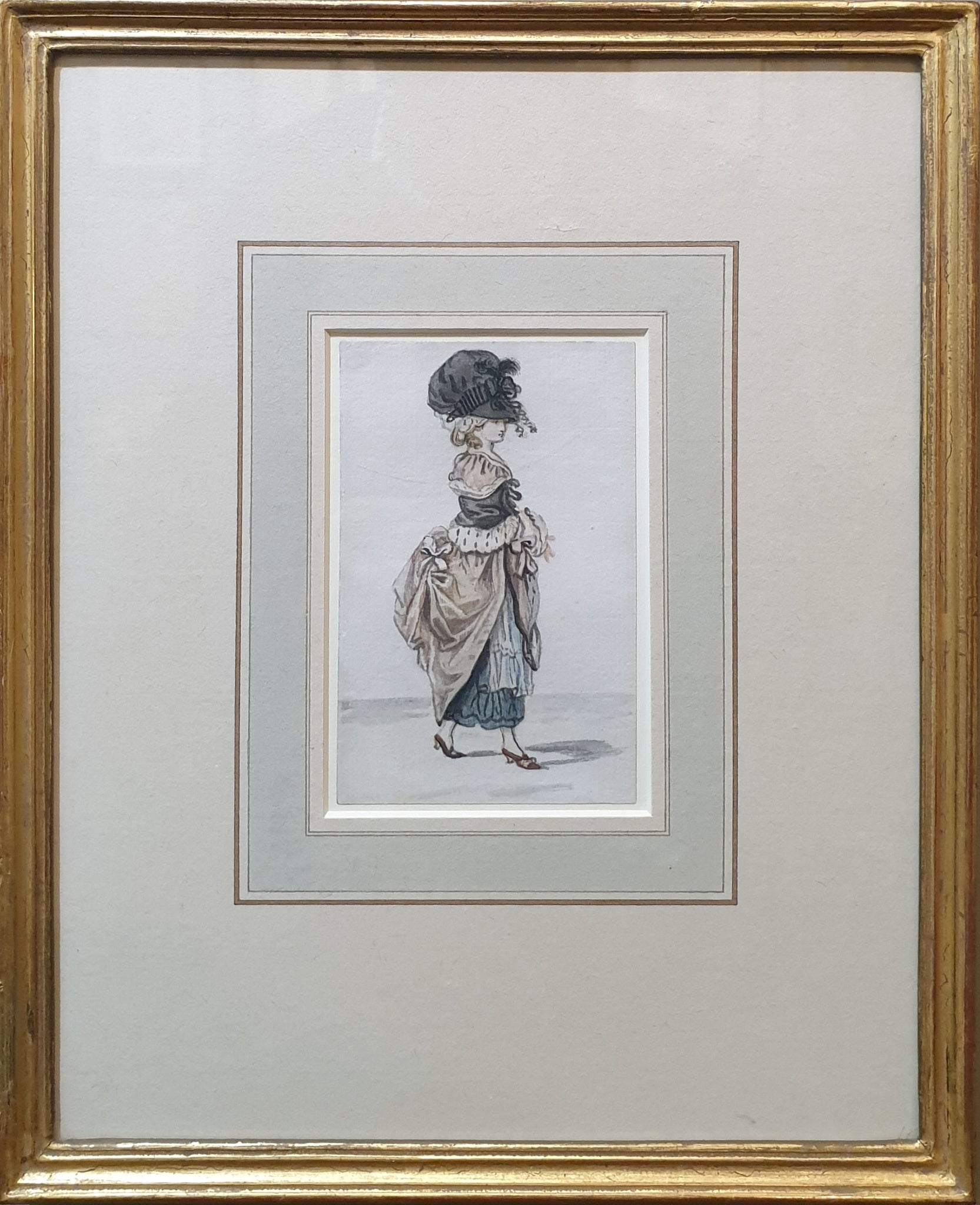 John Collet, (Collett) 1725-1780. Charming watercolour study of a young woman wearing a bonnet. Circa.1775. 7.9 by 12 cms. Image. 25.5 by 31 cms. Overall in frame. Provenance: with Thomas Agnew & Sons London circa.1980.