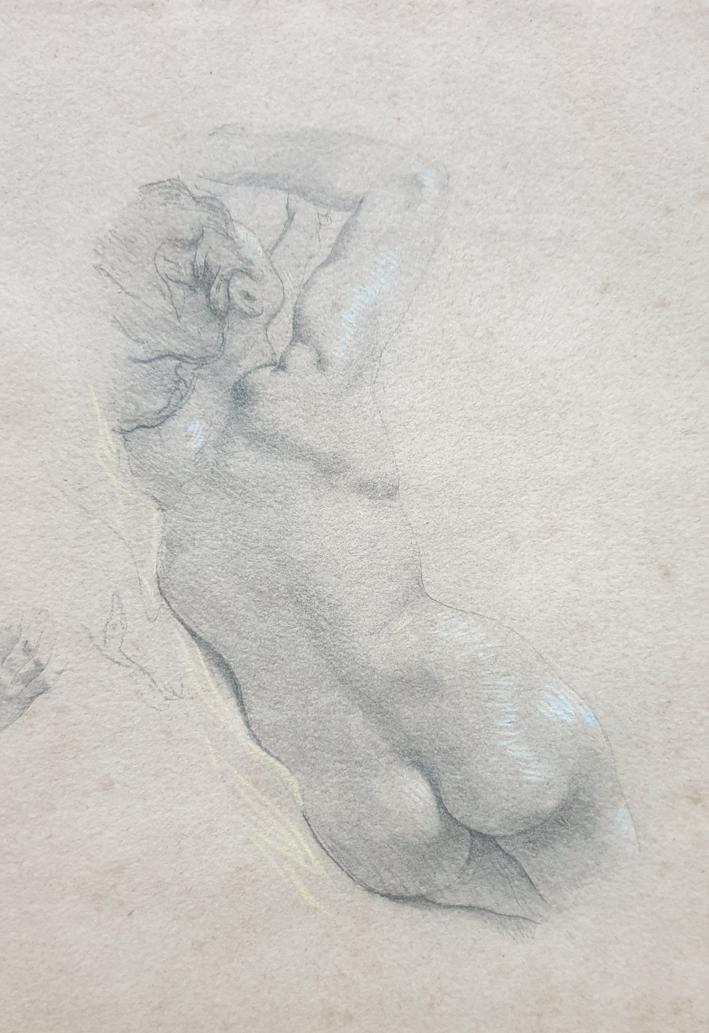 French School mid 19th.Century sheet of figure studies. Pencil and chalk drawing. An accomplished but to me unknown hand. 23.6 by 17 cms.