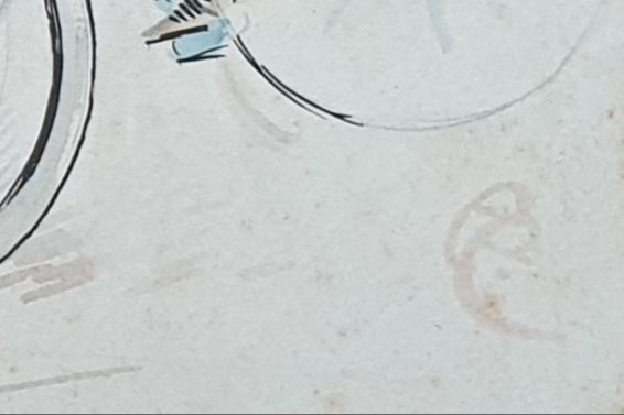 Late 19th.Century British School pen ink and watercolour drawing monogrammed lower right ee? An accomplished but to me unknown hand. Circa.1890. Titled to the mount "Won By A Neck". 25.5 by 20.1 cms to mounted image. 38 by 42.5 cms overall mounted. Some slight foxing and timestaining to image. The original mount has extensive foxing and staining.